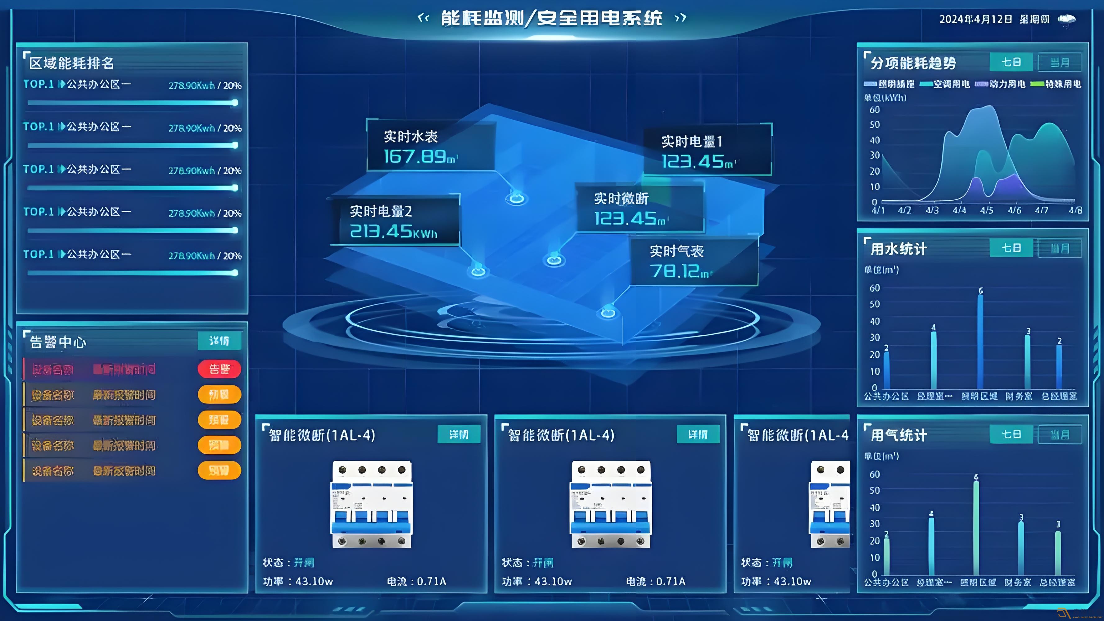 平台就像建筑的 “节能管家”,它整合电力、用水、空调、照明和新能源等各种用能,通过物联网、数据处理和智能控制技术,实现对建筑能源的智慧化管理。核心目标很明确:帮大楼省电省水、提升用能效率、降低运营成本,让建筑更绿色低碳。